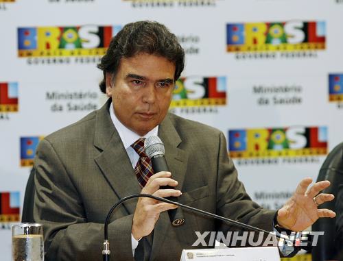 5月7日,巴西衛(wèi)生部長(zhǎng)若澤·滕波朗在首都巴西利亞召開(kāi)的新聞發(fā)布會(huì)上宣布巴西已發(fā)現(xiàn)4例確診甲型H1N1流感病例。 新華社/路透