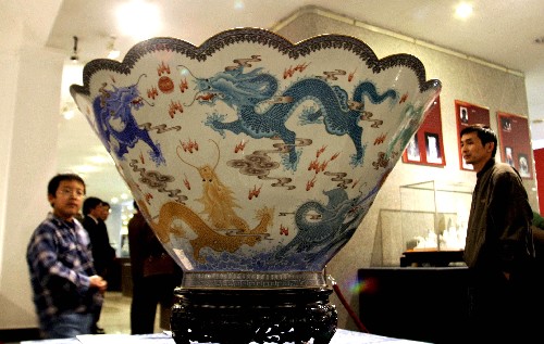 “瓷器真正意義上的年款官窯記載要從明代開始算起?!鼻G治中指出,明代官窯成立于洪武35年,明惠帝命設立御窯廠,而官窯所生產(chǎn)的瓷器上冠以皇帝年號,成為“永樂窯”,也就是說從明代的永樂朝開始,在瓷器上書寫帝王的年號款,并且均為四字篆書。“這點成為鑒定明代瓷器的一個小常識。在我國的陶瓷工藝歷史上,永樂瓷器的鮮紅釉、甜白釉和青花瓷獨樹一幟,占有特殊地位,成為明清兩代的典型。”荊治中介紹到,永樂瓷造型清芳、圓潤、靈巧,釉面肥厚,無橘皮紋,臼釉器的口、底、邊角與釉薄處多為白色或黃色。而此時的青花瓷,由于使用的是進口的“蘇尼勃青料”,燒造時會出現(xiàn)自然的暈散,形成濃重的結(jié)晶斑點,成凹凸不平狀?!疤貏e值得一提的是,此時圓器中的口沿,用手試之,有鋒利感,而后仿的口沿多圓潤,不見棱角。這種器口的特點,成為收藏者斷定年代、區(qū)分真?zhèn)蔚闹饕罁?jù)之一。”