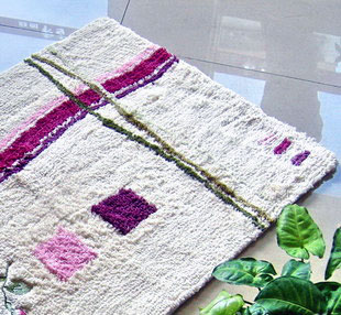 純棉地毯分很多種,有平織的、線毯(可兩面使用)、時(shí)下非常流行的雪尼爾簇絨系列(有細(xì)絨的,也有粗絨的)等很多種,性價(jià)比較高,一般售價(jià)在300—800元之間(以140*200 cm為參考標(biāo)準(zhǔn))。腳感柔軟舒適,其中簇絨系列裝飾效果非常突出,便于清潔,可以直接放入洗衣機(jī)清洗。純棉地毯有加底的,也有無底的,加底的主要起到防滑作用,一般來說,客廳及臥室、書房等干區(qū)可選用無底的,浴室、入口、餐廳、練功房等可選用加底的,固定效果更突出。