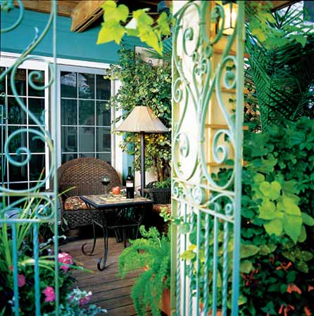 即使在沉悶的天氣里,下沉花園上方懸臂上的吊扇,也會(huì)給在花園里乘涼的人帶來(lái)習(xí)習(xí)清風(fēng)。到了寒冷的季節(jié),就是漂亮壁爐發(fā)揮作用的時(shí)候了,暖暖的火光能驅(qū)走寒冷,增加戶外空間的使用時(shí)間?;▓@中種滿熱帶氣息的植物,如棕櫚樹(shù)、芙蓉花、黑葉芋與一年生植物、蔓生植物填滿了花箱和花盆,給小庭院帶來(lái)生機(jī)勃勃的感覺(jué),也達(dá)到了阻隔外界視線、保護(hù)隱私的作用。而小噴泉潺潺的流水聲則把街道的喧囂淹沒(méi)在外。