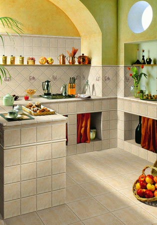 瓷磚的材質(zhì)分為釉面磚、通體磚等幾大類。廚房墻面磚首選光滑的釉面磚,清潔起來(lái)非常方便,還可以隨主人的喜好拼貼出不同的裝飾效果。地面瓷磚材質(zhì)則最好選擇啞光面的,防止地磚灑上水后,將人滑倒。
