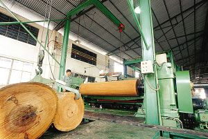 第二步:原木旋切干燥