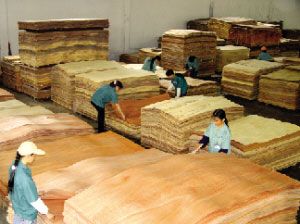 地板基材在初步加工完成后,還要經(jīng)過專人精心分選,去掉不合格的產(chǎn)品。經(jīng)過高溫高壓,基材內(nèi)部存在較大的內(nèi)應(yīng)力,需要靜置平衡15天到20天左右釋放這種內(nèi)應(yīng)力,使得基材平衡穩(wěn)定。這個過程叫作養(yǎng)生。