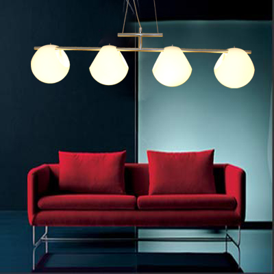 吊燈的組合形式多樣,單盞、三個一排、多個小燈嵌在玻璃板上的,還有由多個燈球排列而成的,體積大小各異。在選擇餐廳吊燈時,就要根據(jù)餐桌的尺寸來確定燈具的大小。餐桌較長,宜選用一排由多個小吊燈組成的款式,而且每個小燈分別由開關(guān)控制,這樣就可以依用餐需要開啟相應(yīng)的吊燈盞數(shù)了。如果是折疊式餐桌,那就可以選擇可伸縮的不銹鋼圓形吊燈來隨時依需要擴(kuò)大光照空間。而單盞吊燈或風(fēng)鈴形的吊燈就比較適合與方形餐桌或圓形餐桌搭配了。