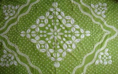 大理白族扎染是白族人民的傳統(tǒng)民間工藝產(chǎn)品,集文化、藝術(shù)為一體,其花形圖案以規(guī)則的幾何紋樣組成,布局嚴(yán)謹(jǐn)飽滿,多取材于動(dòng)、植物形象和歷代王宮貴族的服飾圖案,充滿生活氣息。其扎染分為扎花和浸染兩個(gè)環(huán)節(jié)。扎花是以縫為主、縫扎結(jié)合的手工扎花方法,具有表現(xiàn)范圍廣泛、刻畫細(xì)膩、變幻無窮的特點(diǎn):浸染采用手工反復(fù)浸染工藝,形成以花形為中心,變幻玄妙的多層次暈紋,凝重素雅,古樸雅致。大理白族扎染以純棉布、絲綿綢、麻紗、金絲絨、燈芯絨等為面料,目前除保留傳統(tǒng)的土靛染藍(lán)底白花品種外,又開發(fā)出彩色扎染的新品種。產(chǎn)品有匹色布、桌巾、門簾、服裝、民族包、帽子、手巾、圍巾、枕巾、床單等上百個(gè)品種。