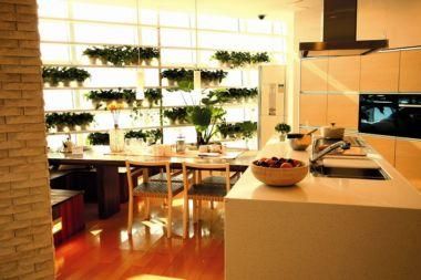 另外,廚房也是不錯(cuò)的休息區(qū),可以在廚房里添設(shè)娛樂設(shè)備,但電視和音響宜遠(yuǎn)離爐臺(tái)與水槽,可存放于同雙眼平高的層架上,以不致碰到食物為宜。若廚房是位于多功能的大房間一隅,在廚房的設(shè)計(jì)上,宜和室內(nèi)其他部分搭配融合,在空間允許的條件下,不妨用多功能桌椅、燈飾或沙發(fā)等獨(dú)立家具來(lái)搭配廚具。