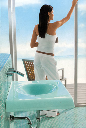 空間決定形式。洗臉池大致分成獨立式和臺式兩種。獨立式的造型美觀、占地面積小,并便于維修,適合空間不大的衛(wèi)生間。但它需要配備鏡箱或盥洗架,以便利用池子上方的空間擺放一些洗漱用具及化妝品等。臺式洗臉池至少要占據一張小課桌的空間。它的臺面上可放洗漱用具,下面的柜子還能放雜物。如果衛(wèi)生間面積不大,可以考慮在墻角安裝一種三角形的洗臉池,池子的上方可掛一個三角的雜物架,以存放洗滌用品。