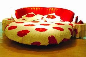 大膽的顏色和夸張的造型是這款圓床的魅力所在。