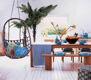 選擇一些簡(jiǎn)單的家具和飾物,既適用于室內(nèi)裝飾,又適合于戶外布置,讓我們動(dòng)手來(lái)創(chuàng)造一個(gè)優(yōu)雅的休閑空間,讓室內(nèi)與室外渾然一體,和諧如一!色彩明亮的裝飾墻、簡(jiǎn)潔大方的紡織品、觸摸歷史的古董飾品、溫室種植的熱帶植物,讓家居流露出一種異國(guó)情調(diào)。