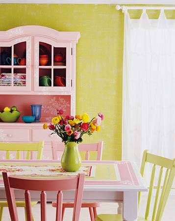 搭配建議:搭配粉白、粉紅、粉黃等可愛(ài)的色彩,能充分延續(xù)粉綠色墻面明媚的感覺(jué),并提升層次感。造型柔和、質(zhì)地溫潤(rùn)的田園家具,能與色彩本身那種爛漫純真的感覺(jué)和諧如一。