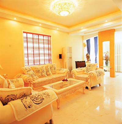 圖解:與目前很走紅的簡潔風(fēng)格大相徑庭,連沙發(fā)和矮幾也是極盡繁復(fù)之能事,這樣才更好地突出了客廳頂部那盞豪華的水晶燈。這些燈具,都是主人家和設(shè)計師一起在杭州的燈具市場里尋尋覓覓找來的,不過看來日常的清潔將是一個很大的現(xiàn)實問題。
