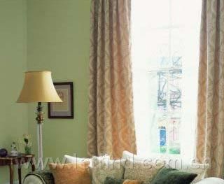 對(duì)大多數(shù)人來說,沒有把握的話可以選擇素色的窗簾??蛷d窗簾的顏色最好從沙發(fā)花紋的顏色中選取。比如說白色的意式沙發(fā)上經(jīng)常會(huì)綴有粉紅色和綠色的花紋,窗簾就不妨選用粉紅色或綠色的布料。