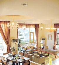 客廳、餐廳以及茶室都采用淺色家具,淺而不亮,使整個廳堂給人以柔和、簡潔和大方的感覺。