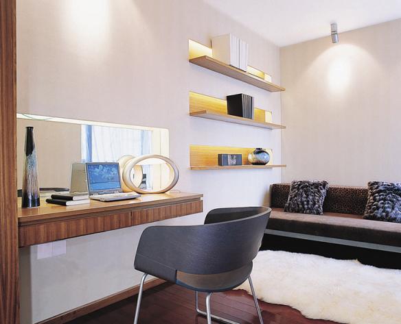 如果家中有一間書房,那最理想不過。如果沒有專門的書房,也可以選擇舒適的角落辟出空間作為書房。在進行書房設(shè)計時,有幾個方面要特別注意。