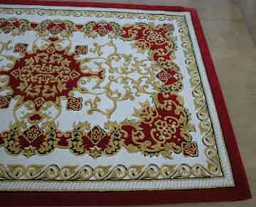 家居地毯底色及圖案的選擇。家居地毯的顏色一般有大紅、粉紅、駝色、橙色、墨綠、淺綠等,選擇地毯的底色應(yīng)與裝飾的色調(diào)協(xié)調(diào),一般不應(yīng)反差太大。地毯的圖案也是多種多樣,選擇時也應(yīng)與裝飾風(fēng)格協(xié)調(diào)。一般歐示風(fēng)格的裝飾可選擇宮廷“美術(shù)式”、“采花示”、等圖案的地毯,中示風(fēng)格加紅木家具的裝飾則應(yīng)選擇“京式”、“京彩”圖案的地毯?! ?/P>