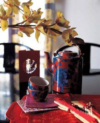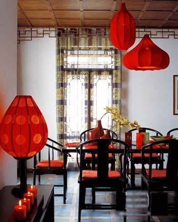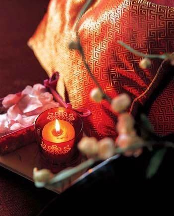 餐廳:食色雙馨 大多數(shù)居室中的餐廳都靠近客廳,所以在整體布置上,要考慮到與客廳的風(fēng)格相協(xié)調(diào),同樣物件的擺設(shè)不要過于繁雜。但餐廳的布置上可以多些濃烈的色彩,所以在婚慶氣氛中的餐廳,可大膽地多用些紅色,畢竟,鮮艷的顏色有增進食欲的效果。在具體布置上,可以適當增加些瓷器的擺設(shè),不僅凸現(xiàn)了餐廳的就餐功能,同樣代表中國的瓷器的運用也呼應(yīng)了整個中式婚慶的家居風(fēng)格。中式餐廳中出現(xiàn)的織物不是很多,但紛繁的中式織物卻最能烘托婚慶的喜氣。所以,在餐桌上擺放各種鮮艷的中式刺繡的餐墊、杯墊,會起到畫龍點睛的效果。鮮花同樣也是布置中式婚慶餐廳的法寶,不可貪多,點到為止即可。餐桌燈的挑選不必拘泥傳統(tǒng),同一風(fēng)格不同造型的餐桌燈懸于桌上,反而倍添情趣。花瓶及蠟燭也不必拘泥于中式風(fēng)格,但同樣的大紅色彩融于整個中式婚慶氣氛餐廳內(nèi)不僅不顯突兀,反倒渾然一體。