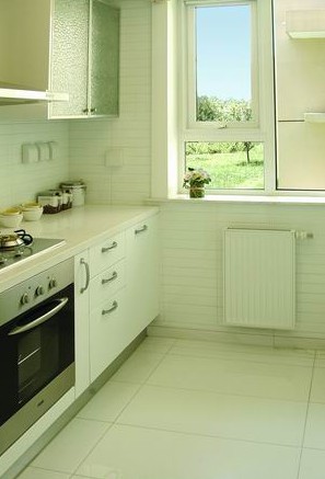 要突出廚房空間變化的效果,深色瓷磚也不再是唯一的選擇。當(dāng)廚房普遍不大時(shí),淺色瓷磚有利于擴(kuò)大視野的空間,越來(lái)越受到人們的歡迎。耐看的純白色是最流行的色澤,它甚至不需要任何的暗花或斜紋、圖案,僅以各色飾線和花片加以點(diǎn)綴,便能帶出明快、時(shí)尚的感覺(jué)。淺藍(lán)、蘋(píng)果綠、淺紫色等冷色調(diào)瓷磚也非常流行,它們多與白色瓷磚搭配起來(lái)鋪砌。
