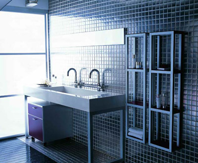 置身在博洛尼冰冷的太空艙稱得上是沁人心脾的清涼。金屬馬賽克鋪貼墻面和鈦鋁合金浴室家具的超強(qiáng)組合將清涼發(fā)揮淋漓盡致,光線的變換指揮著墻面有節(jié)奏的不停跳動。沖個溫水澡,冰冷中彌漫溫情和享受。