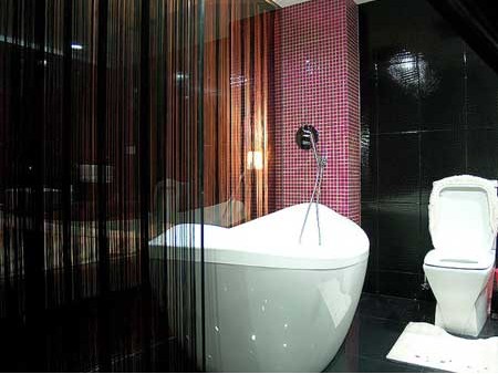 貼示5:一定要做墻面防水,在鋪墻面瓷磚之前,做好墻面防水。一般防水處理中墻面要做30厘米高的防水處理,但是非承重的輕體墻,就要將整面墻做防水,至少也要做到1.8米高。
