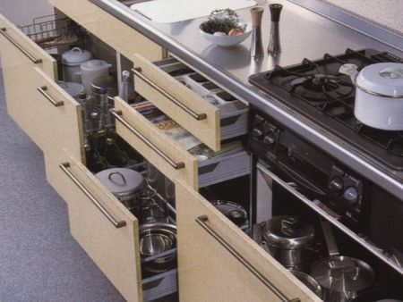 許多“家庭煮婦”為了保持廚房的整齊美觀,平時(shí)把碗碟、刀具、砧板等放在廚柜里;也有的家庭由于廚房空間狹小,把這些用具放在角落里,或摞放在一起,這都不利于廚具的干燥和清潔,容易孳生細(xì)菌。廚具如何擺放可是大有學(xué)問的。