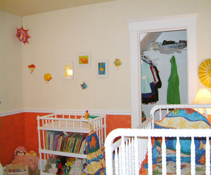 第一, 在初生嬰兒房間里,只需簡單的涂刷墻面,以營造寧靜的空間氛圍;