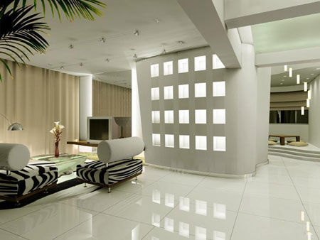 居室:這里一般不需要很強的光線,可用壁燈、落地燈來代替室內(nèi)中央的頂燈,壁燈宜用表面亮度低的漫射材料燈罩,這樣就使臥室顯得光線柔和,利于休息。床頭柜上可用子母臺燈,大燈作閱讀照明,小燈供夜間起床用,另外,還可在床頭柜下或低矮處安上腳燈,以免起夜時受強光刺激。如果是雙人床,還可在床的兩側(cè)各安一盞配上調(diào)光開關(guān)的燈具,以便其中一人看書報時另一人不受光的干擾。