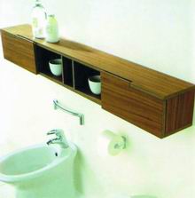 騰出一面整墻打造出木質(zhì)展示架,將毛巾、化妝品、護(hù)膚品、彩色蠟燭、精油香爐等置于其上,可以增加洗浴空間的舒適感。注意木架一定要涂防水漆。