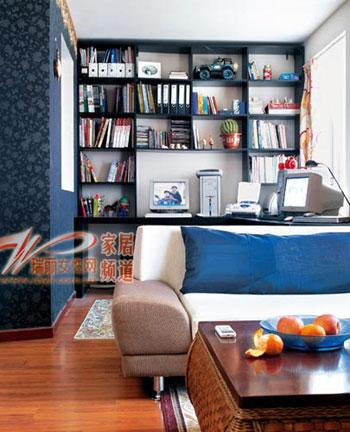 從事室內(nèi)設(shè)計(jì)的女主人將整個客廳的窗與散發(fā)著淡淡書香的敞開式轉(zhuǎn)角書桌安靜地安置于客廳一角?! ?/FONT>