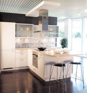 木質(zhì)、防火板、石材是櫥柜中的基本材質(zhì),在簡約主義的陣營中,更可見到后現(xiàn)代的新寵,如鋁、碳纖維、塑料、高密度玻璃等等,豐富了廚房世界的組合和諸多實(shí)用功能,如防水、耐刮、清爽、透光等等。