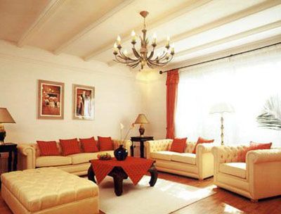 客廳的天花板和地板的設(shè)計(jì)要遵從“天輕地重”的原則,天花板的顏色要以淺淡為主,地板的顏色要相對(duì)深一些。如果上面顏色深,下面顏色淺,就會(huì)給人頭重腳輕的感覺(jué)。天花板若有橫梁,人坐在橫梁下容易造成精神緊張,要用一些美觀藝術(shù)的方式把橫梁巧妙地隱藏起來(lái)。