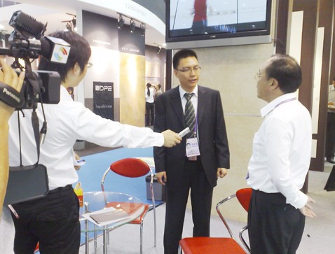 圖片二、佛山市副市長李子甫參觀宏宇陶瓷,并現(xiàn)場接受電視臺采訪