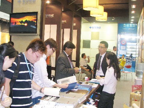 宏宇出口部總經(jīng)理伍劍鋒很自信地介紹筆者,宏宇展示位置優(yōu)越,人流頻繁,拋光磚、仿古磚、釉面磚、廣場磚等系列精品琳瑯滿目,性價比高,海外客戶絡繹不絕,高漲的人氣得到不少同行的羨慕;雖然客戶情況稍遜于往屆,但大大優(yōu)于展會平均水平;他們在維護好老客戶之余,已經(jīng)成功地開發(fā)了多個新客戶,新的訂單將于近日發(fā)貨,更有不少意向客戶應邀赴佛山實地考察,有望達成合作。