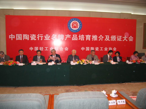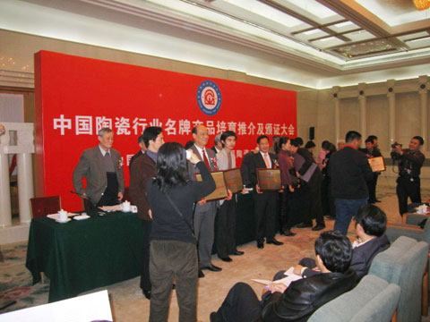 概要: 1月15日上午10點,“中國陶瓷行業(yè)名牌產(chǎn)品培育及頒證大會”在北京人民大會堂隆重舉行?!昂暧睢迸茐Φ卮u產(chǎn)品喜獲“中國陶瓷行業(yè)名牌產(chǎn)品”殊榮。大會由中國輕工業(yè)聯(lián)合會副會長、中國陶瓷行業(yè)協(xié)會理事長楊自鵬主持。全國政協(xié)副主席周鐵農(nóng)以及中國輕工業(yè)聯(lián)合會、中國名牌戰(zhàn)略推進(jìn)委員會、中國陶瓷工業(yè)協(xié)會、陶瓷行業(yè)精英人士共200多人出席了大會。