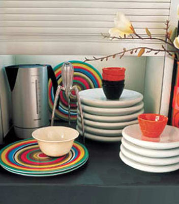 灰白相間的櫥柜在過節(jié)時需要增加活躍的氣氛,選擇波普圖案和圖樣豐富的美洲部落元素的廚具,對改變單調(diào)的氣氛非常有效。波普餐盤可以立在水槽邊和墻上的隔板上,再將一些具有民族風格的彩色調(diào)料瓶、水果托盤和冰酒桶混搭在波普風格之中,立刻組合出極為豐富的色彩和多變的圖案。
