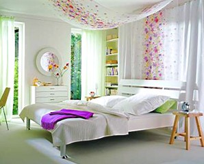 歐美古典主義風格的床上布藝用品,在材料選擇方面,以純棉、綢緞、錦緞等素材,制作出印花、刺繡、提花三款床具式樣。在細節(jié)創(chuàng)意上,則注重蕾絲花邊的加工,極力營造立體美。色彩方面,永不落伍的白色,依然是設計的重點,為彰顯雪白床具的潔凈細致,在細部花紋上則用鑲繡、鏤花、緞帶造型,營造雅致的感覺。其他的淡黃、淺菊、淺褐等風格清新的床飾十分適合炎夏使用。此外,亮眼的流行色(亮菊、寶藍、艷紅、鮮黃)和各式充滿海洋、陽光、庭園的圖形,增添室內(nèi)迷人的風采,為消費者帶來法式的浪漫與溫柔。