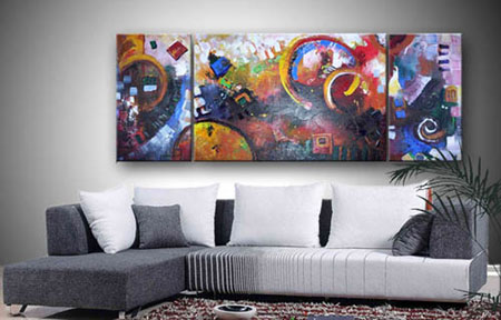 二、色彩上和室內(nèi)的墻面家具陳設(shè)有呼應(yīng),不顯得孤立。如果是深沉穩(wěn)重的家具式樣,畫就要選與之協(xié)調(diào)的古樸素雅的畫。若是明亮簡潔的家具和裝修,最好選擇活潑,溫馨,前衛(wèi),抽象類的。