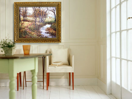 油畫要和自己的裝修風(fēng)格協(xié)調(diào),簡約的居室配現(xiàn)代感強(qiáng)的油畫會(huì)使房間充滿活力,可選無外框油畫。歐式和古典的居室選擇寫實(shí)風(fēng)格的油畫,如人物肖像,風(fēng)景等。最好加浮雕外框,顯得富麗堂皇,雍容華貴。