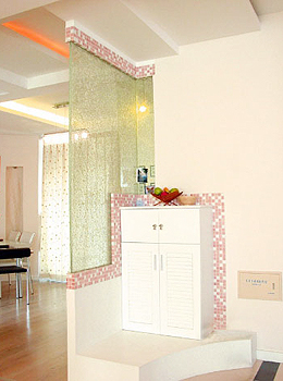 隔斷的作用其實(shí)不僅僅是劃分空間,而且也是聯(lián)系空間的重要手段,有時(shí)也可以用隔斷來(lái)做虛劃分。做隔斷的方法有很多種:以低形矮臺(tái)來(lái)限定空間,以低柜式成型家具的形式做隔斷體;以噴砂玻璃、壓花玻璃等通透的材料分隔大空間;以帶有不同花格圖案的透空木格柵屏作隔斷,既有古樸雅致的風(fēng)韻,又能產(chǎn)生通透與隱隔的互補(bǔ)作用等。