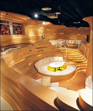 初次走進(jìn)SongClub的人多少會(huì)有些迷惑,這個(gè)充滿藝術(shù)感的空間從設(shè)計(jì)感覺(jué)上更像一個(gè)室內(nèi)的山地梯田——層層疊疊的起伏充滿動(dòng)感。