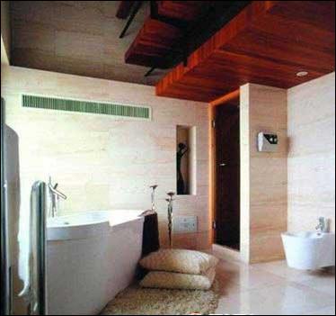 明亮的天頂采光,放在浴室中間的木質(zhì)浴盆,粗獷的石材地面以及帶有強(qiáng)烈的民族圖騰式裝飾紋樣的屏風(fēng),組合成質(zhì)樸、渾然天成的原生態(tài)氛圍。這種風(fēng)格的設(shè)計(jì)靈感,最初來源于廣袤的非洲大地,原生態(tài)風(fēng)格的居室出現(xiàn)在都市住宅里,使都市新貴尋覓到返樸歸真的自在空間。