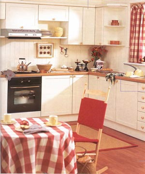 色彩的作用仍然至關(guān)重要,因為如果不使用色彩就無法把鄉(xiāng)村風(fēng)貌帶進(jìn)來。田園風(fēng)光的各種綠色、秋天樹葉的溫暖紅色,甚至池塘的色彩,無論是用在櫥柜、油漆地板還是瓷磚上,都能喚起對戶外生活的聯(lián)想。色彩可從啞色到土色調(diào)或是鮮明的主色調(diào),色調(diào)單一的廚房有時也可以利用擱板上或窗臺上的收藏品來增添各種色彩。設(shè)計成功的鄉(xiāng)村廚房能表達(dá)出簡樸年代的溫馨。