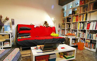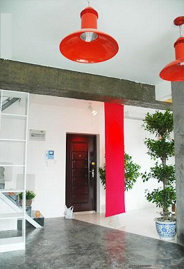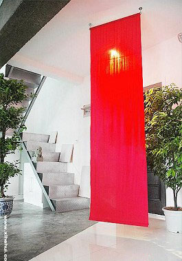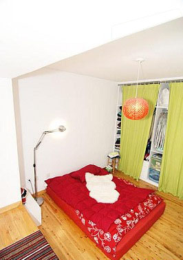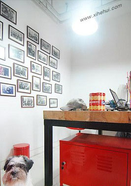于是用了紅布簾子做了軟隔斷,一來空間層次更分明,而來也呼應(yīng)一下窩里的主題色