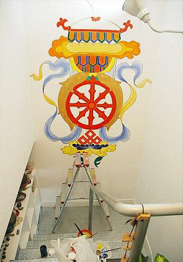 樓梯拐角處的自家"壁畫",蛋花了三天時間才完成的吉祥八寶圖~~~(至今還缺了兩寶~~)