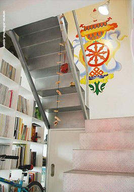 從樓下看壁畫的樣子...樓梯上栓著朋友送的泥巴風(fēng)鈴、古董市場淘的木魚還有出去玩時買的銅馬鈴子....下面還有俺心愛的自行車。。。。。 陪著俺去了好多地方,八過已經(jīng)被偷啦。。。555