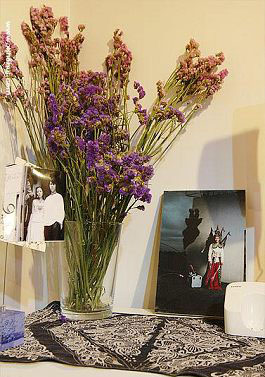 上面鋪了貴州買回來的苗繡,還有我們的照片