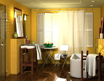 浴室中最理想的色調(diào)是粉色系,例如:粉紅、淡綠、淡藍及桃紅色等。其次則是奶油色系,或是一些中性色,如:黑色及白色。裝飾物及毛巾等配件則可選擇強烈的對比色系。墻面的處理方式應該是盡可能地富有想像力,要不就盡量求簡。在水泥墻上涂上一層油漆會使浴室增添暖度,而馬賽克玻璃磚,刻花磁磚,甚至板舌以及凹槽處理都能使墻壁的設計更為有趣。