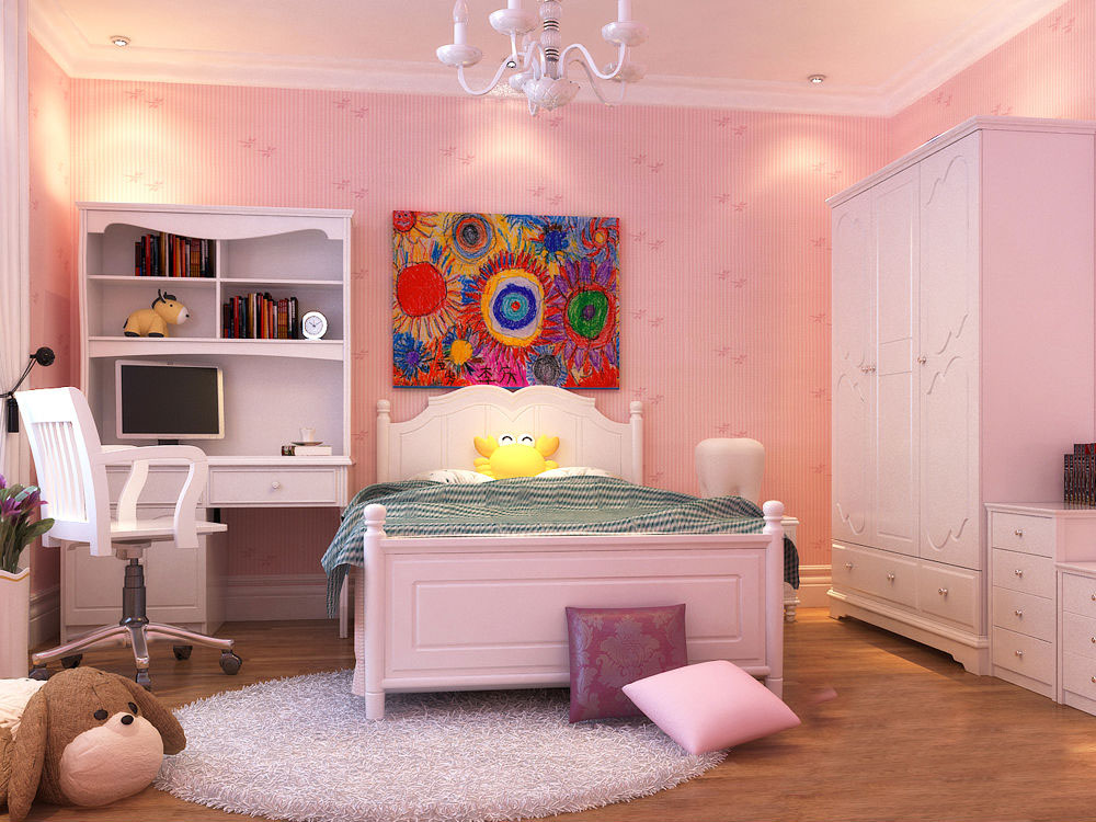 白色的家具配上粉色的壁紙,即淡雅又高貴,想象小主人休息和學習的樣子,家長是不是會覺得很欣慰呢