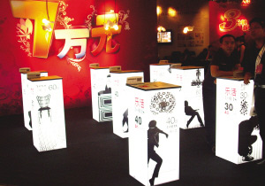 黑白色搭配的經(jīng)典之作非博洛尼家居莫屬。半包廂式設(shè)計(jì)的博洛尼家裝體驗(yàn)館給人的感覺(jué)是神秘、高雅、氣度不凡,整個(gè)“包廂”的主體色調(diào)是黑色,“包廂”內(nèi)是透明的桌椅,墻上是白色的文字展示,黑色而極富光亮質(zhì)感的垂簾將包廂內(nèi)的人與外界隔離,置身于內(nèi)的人體驗(yàn)的是博洛尼咨詢?nèi)藛T的輕聲細(xì)語(yǔ)?!鞍鼛蓖馓匾獍歼M(jìn)設(shè)置,留出10多平方米空間,擺放著似乎與展廳無(wú)關(guān)的白色柱體,柱體微微泛著粉色的光,但不急于奔走的人會(huì)發(fā)現(xiàn)就是這一小排柱體讓黑色的博洛尼家居體驗(yàn)館(