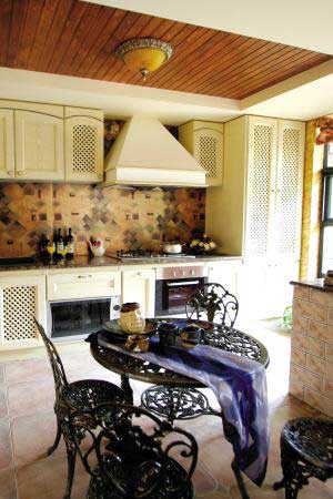 兩種風(fēng)格的混搭上,運(yùn)用地中海鐵藝增加美式鄉(xiāng)村風(fēng)格中的粗獷,美式鄉(xiāng)村代表綠植又會(huì)補(bǔ)充地中海風(fēng)格的天然特質(zhì);技巧上,注重美式鄉(xiāng)村主節(jié)奏,糅合地中海風(fēng)格與主風(fēng)格接近的典型裝飾,并形成以生活追求為重點(diǎn)的鮮明主線,達(dá)成了各種元素交相輝映的精妙融合。