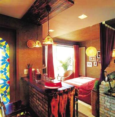 博古架和多寶格劃分出的通透玲瓏?yán)?,藏著猶抱琵琶半遮面的美麗,用它們來擺設(shè)現(xiàn)代雕塑別有一番韻味。碎冰紋的窗格,仿佛領(lǐng)口精致的繡花,卻能奇異地與金屬落地?zé)粝嗟靡嬲?。骨瓷花瓶飽含著暗香浮動,使得馬克杯里的速溶咖啡也有了別樣的香醇……